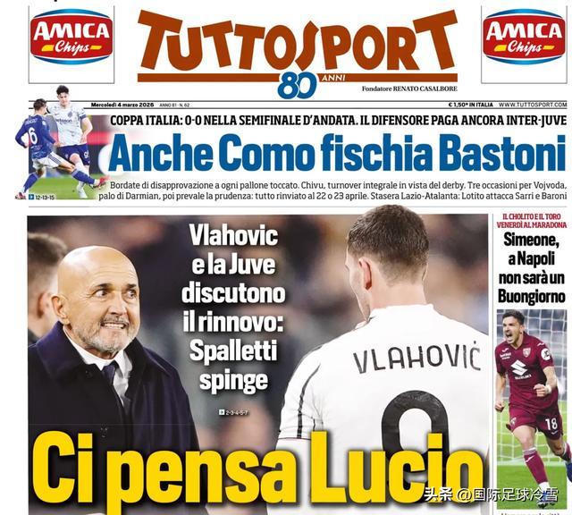 比如,巴斯托尼被嘘的问题。《都灵体育报》兴奋了,头版上书“看看,连科莫都在嘘巴斯托尼”。个人认同老维的观点:此事若是有人“穿马甲”干的,事后炒作最凶的人,当事时嫌疑较大。